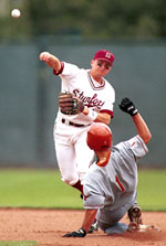 Miami shortstop Javy Rodriguez, freshman from a visit to the White House to celebrate the 2001 NCAA championship with head coach Jim Morris and former Yale righthander U.S. President George W. Bush, adds some of the most daunting statistics to the dream team. The returning senior stole a 2001 nation’s-best 66 bases while batting .388 with five homers and 51 RBI. First team catcher Jeremy Brown of Alabama batted .363 with no errors in 330 chances as a junior in ’01.