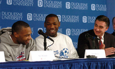 Two 18-year-old men were charged in the shootings that apparently happened because one of the players was speaking with a female Duquesne student, apparently the girlfriend of one of the shooters. How that led to 12 shots being fired is a commentary of our society. What happened next is a commentary on the human spirit. "You look at it now and realize how much worse it could have been, how tragic it could have been." Everhart said. "It's just been one success story after another. You almost feel like someone is looking out for you when it works out this way." Five months after the shooting, life is back to what passes for normal. "It's been such a blur and been such a day-to-day thing, sometimes you don't really see the big picture out there and everything that everybody's been through," Everhart said. A season after going 3-24, Duquesne somehow fielded a team. The team is not getting this award for its on-court performance, but for simply finding a way to persevere. But if there were an award for team of the year, the Dukes would get that too. They were 5-10, averaging 68.6 ppg when Everhart took conventional wisdom and threw it into all three of Pittsburgh's rivers. He decided his team, down to 10 players, would press, run and shoot threes for 40 minutes. The Dukes miraculously won five straight while averaging nearly 100 ppg. The coaches showed the way. The players did it. "They've been very mature about the way they've gone about handling the adversity, but they've also been very resilient and determined not to allow that to let them drop their chin or not have their chest out and feel good about representing Duquesne and doing what we all came here to do," Everhart said. From the moment he got that phone call, Everhart has been singularly focused. "At the time obviously, you're feeling very responsible for all this because you're the guy who convinced these guys to come here," he said. "My thought process was always make sure these young men and these families that are going through this, that you are there for them all the time and that they are treated like you would want to be treated if this was something happening to you or your family." There is no way, the coach said, to prepare for "a kid to walk in, he's teared up, he's emotional, he's talking about he can't sleep and he can't eat. Those are the types of things you never think about, you don't talk about." The bonds that have been formed between players and coaches, players and players, Everhart said "has created relationships on a human level that I don't know they exist at a lot of basketball programs or in a lot of basketball environments." Or anywhere. Which is why the Duquesne players and coaches have won the USBWA Most Courageous Award. |